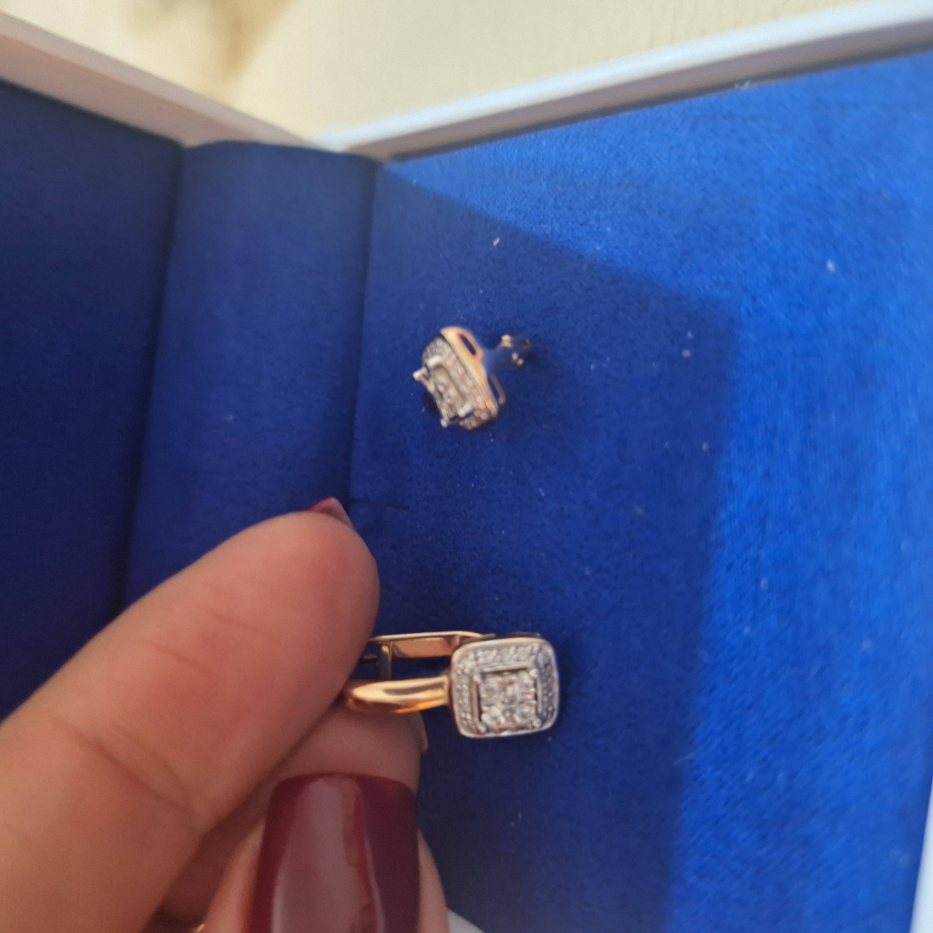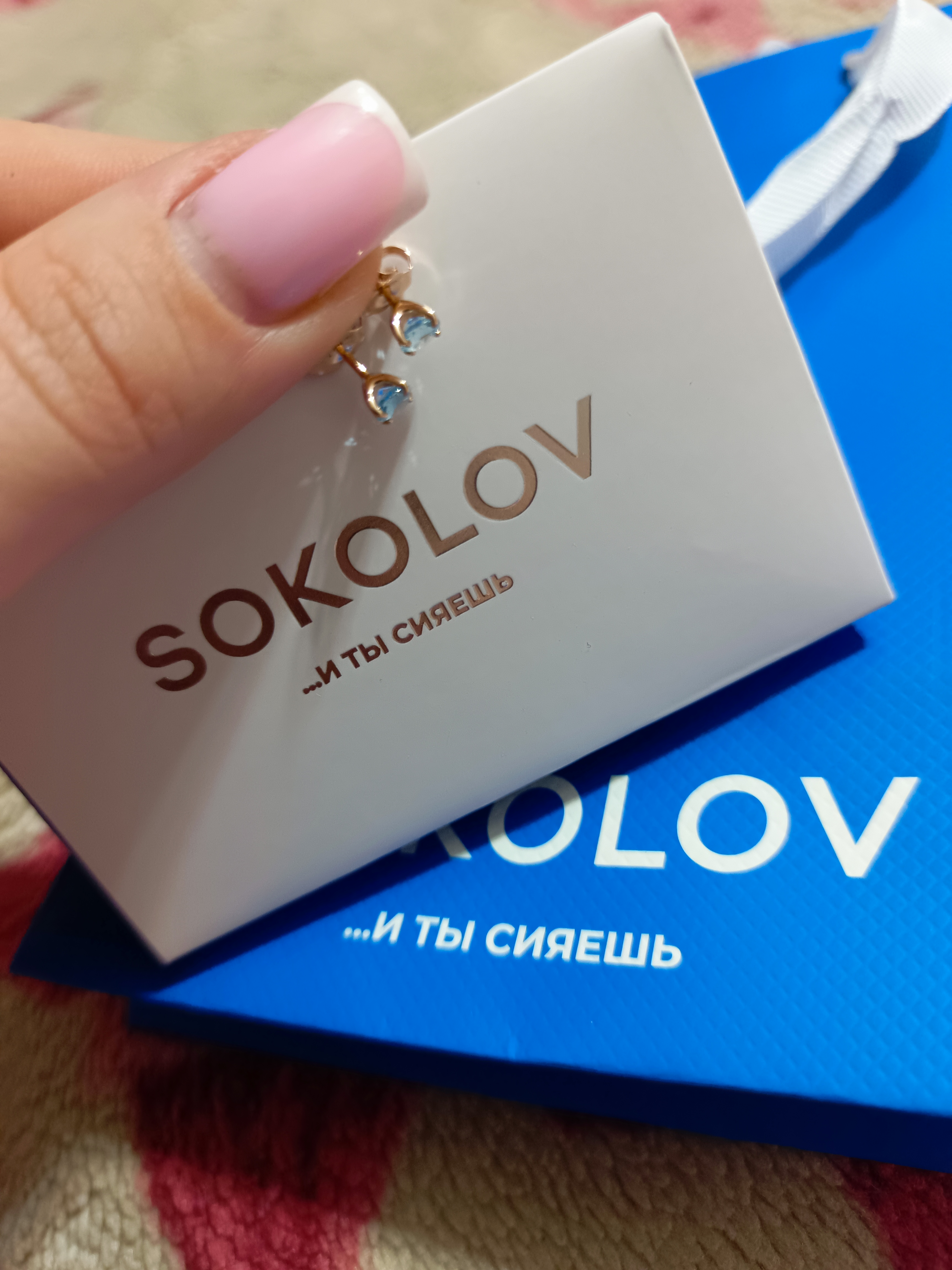 Очень симпатичные, миленькие серьги. Подошли под цвет глаз. Но у меня прокол высокий. Выступают вперед, приходится поправлять. Отдам внучке, себе подберу другие. Покупала в г. Клин. Продавцы девушки очень вежливые, внимательные. Помогают в выборе. Скоро посещу ваш магазин вновь. Спасибо "Соколов"